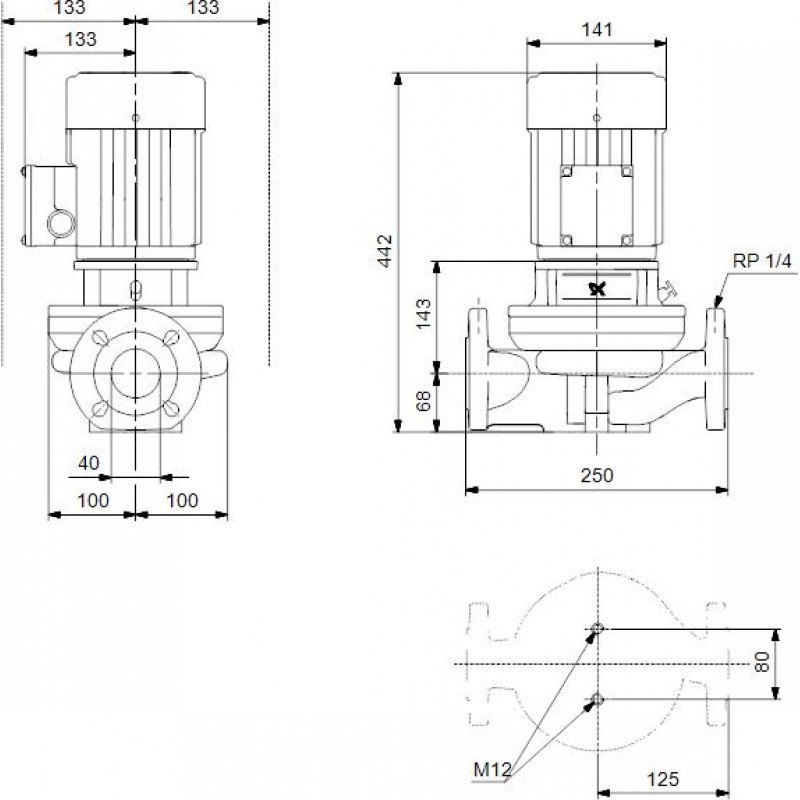 Grundfos In-Line čerpadlo TP 40-180/2 B 0,55kW 250mm 96401998Použití: