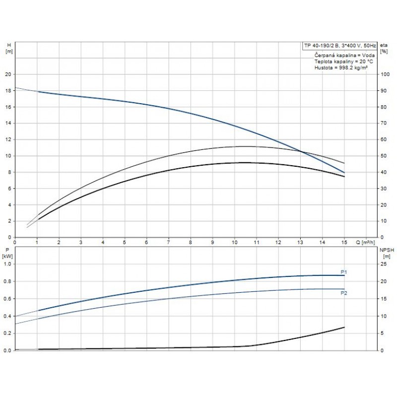 Údaje čerpadla pro dané otáčky: 2855 ot/min