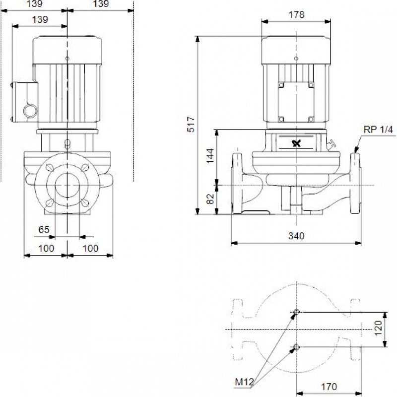 Grundfos In-Line čerpadlo TP 65-120/2 B 1.1 kW 340mm 96402307Použití: