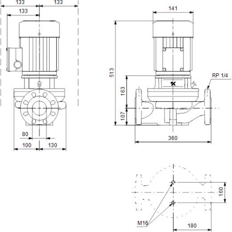 Grundfos In-Line čerpadlo TP 80-30/4 B, PN 10, 0.37 kW 360mm 96402382Použití:
