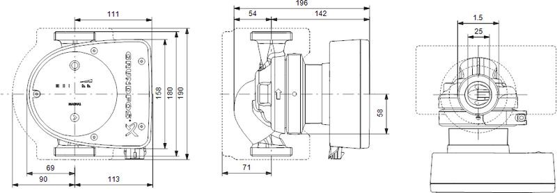 Grundfos MAGNA1 25-60 180 mm oběhové čerpadlo 97924154Technické parametry