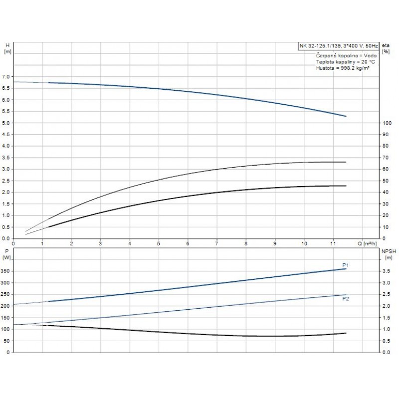 Údaje čerpadla pro dané otáčky: 1400 ot/min