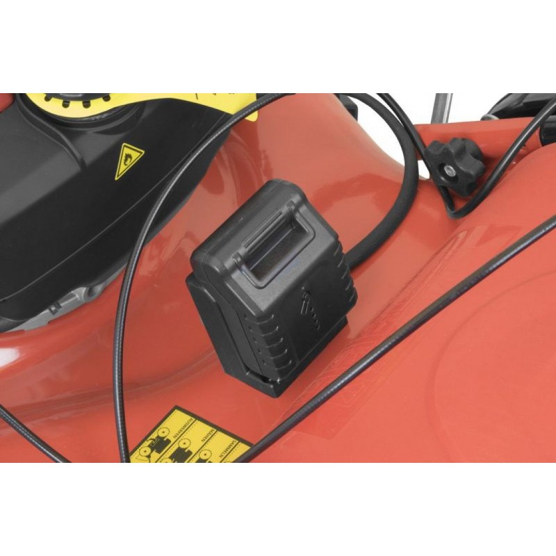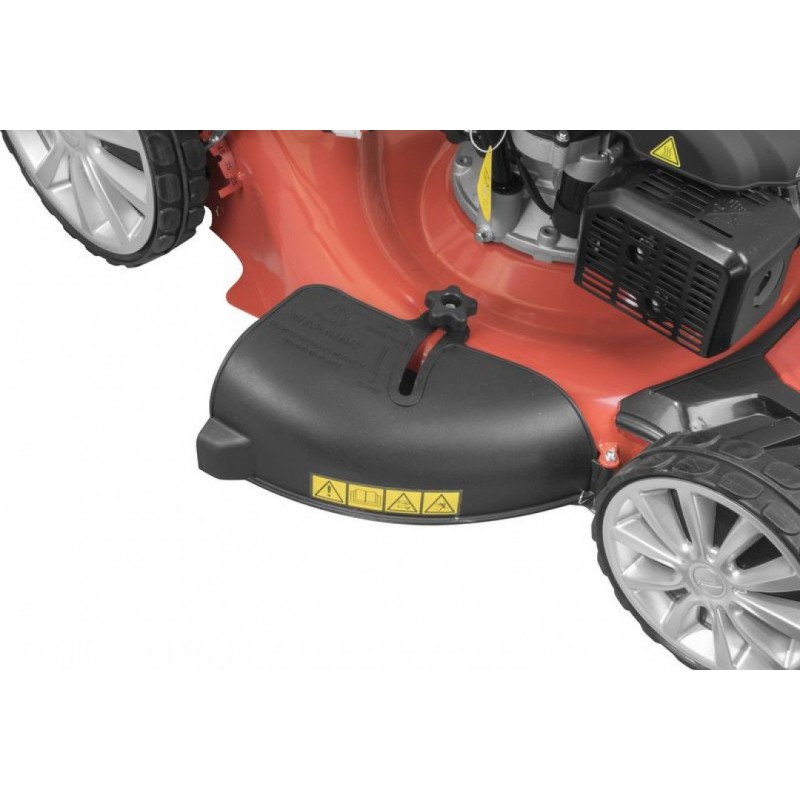 Automatický pojezd (pohon zadních kol, 1rychlostní: 3,6 km/hod); centrální nastavení výšky sečení (6stupňové, rozsah: 25 - 75 mm); funkce „4IN1“ - sečení, sběr trávy, mulčování, boční výhoz.