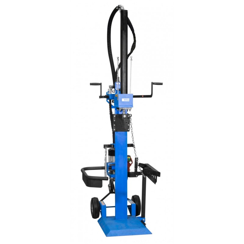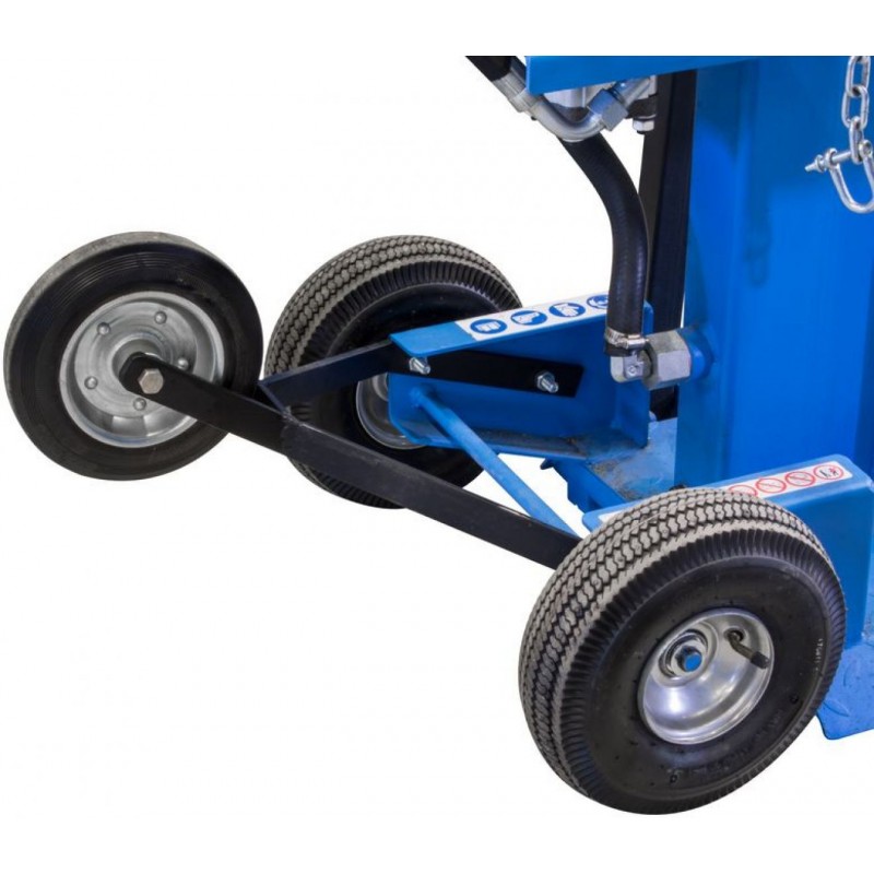 Konstrukce: robustní ocelový rám, výkonné hydraulické čerpadlo, válec se štípacím nožem (zdvih pístu: 960 mm), přídržné rameno, stabilní (nízká) základna, tažná rukojeť, transportní kola (3).