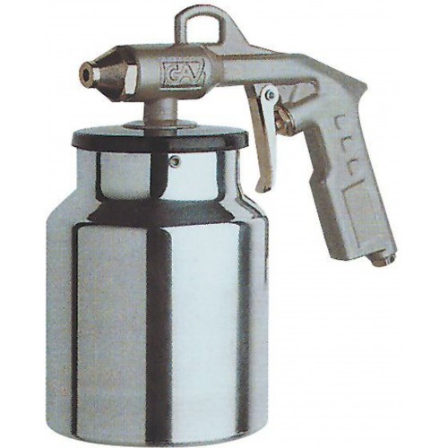Stříkací pistole s 1-litrovou sací nádobkou, určená k údržbě podvozků motorových vozidel (aplikace ochranných laků podvozků, ochranných laků proti nárazům kamínků, přípravků pro odstraňování nečistot zastudena apod.).