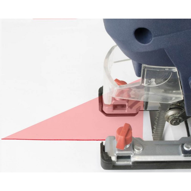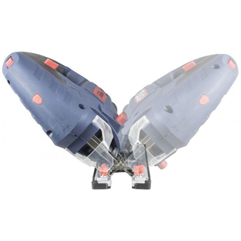 Přesné seřízení zdvihů podle druhu řezaného materiálu (› 6stupňové; rozsah: 800 - 3.000 min.-1); 4polohové nastavení předkmitu pilového listu; úhlové řezy (› naklápěcí základová deska; 2 x 45°).