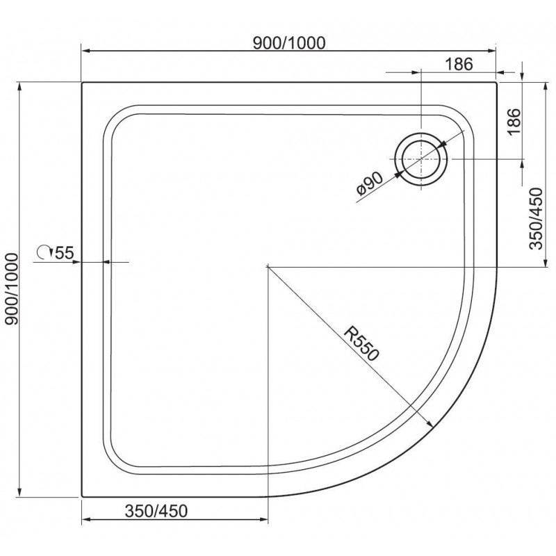 Gustavsberg DENIA 100 sprchová vaničkaTyp: čtvrtkruhová
