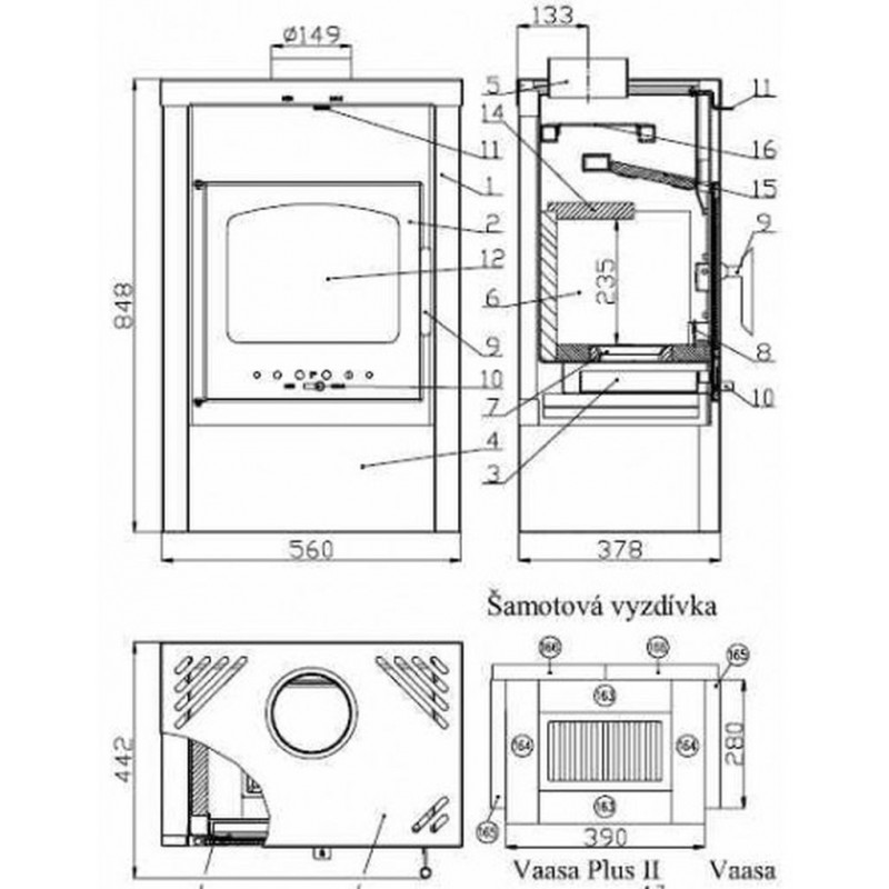 - použitelné palivo: kusové dřevo, ekobrikety , uhelné brykety