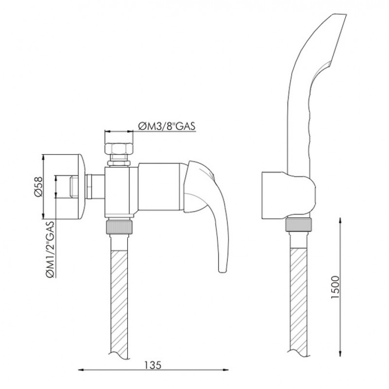 HAKL baterie páková sprchová, beztlaková, délka sprchové hadice 150 cm, HABAT031