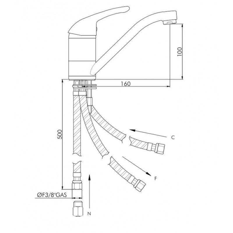HAKL baterie páková stojánková SLIM, beztlaková, výtokové ramínko 16 cm, HABAT033