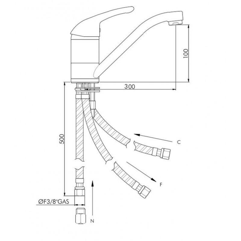 HAKL baterie páková stojánková SLIM, beztlaková, výtokové ramínko 30 cm, HABAT034