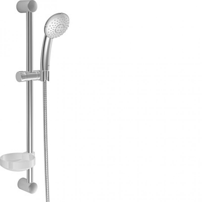Nástěnná tyč HANSABASICJET ,,600´´. S ruční sprchou HANSABASICJET 3. Sprchová hadice 1750mm. Mýdlenka. Chrom.Obrázky se mohou lišit od originálního produktu/položky.