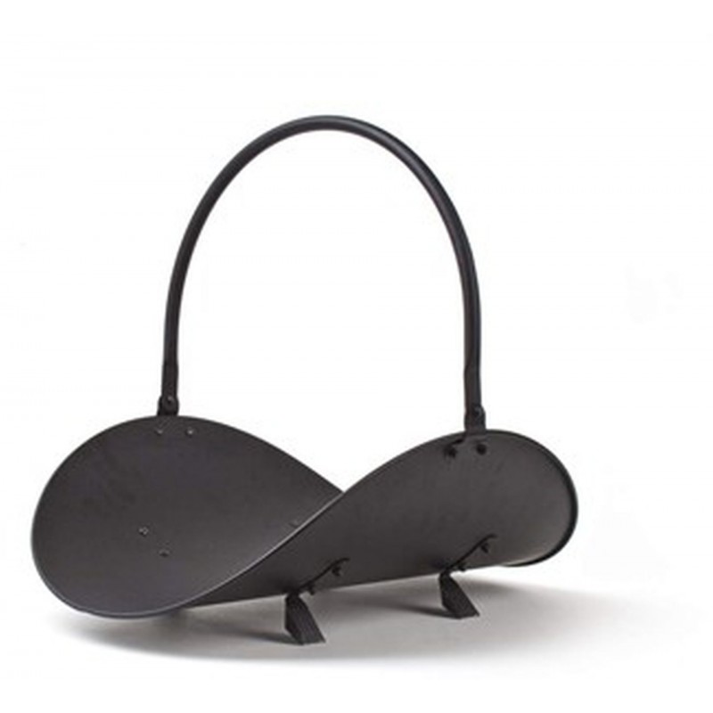 Koš HAPPY GREEN na krbové dřevo, moderního vzhledu, barva černá mat, materiál ocel.
