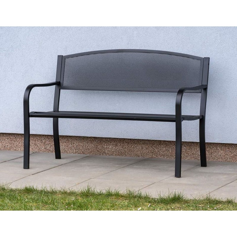 Zahradní lavička LOCARNO je vyrobená z oceli ošetřena vrstvou černé práškové barvy. V sedací části obsahuje 6 latí o rozměrech 40 x 20 mm. Rozměry lavičky: 127 x 60 x 85 cm. Nosnost lavičky: 150 kg. Lavice je pro snadnější přepravu dodávána v rozmontovaném stavu.