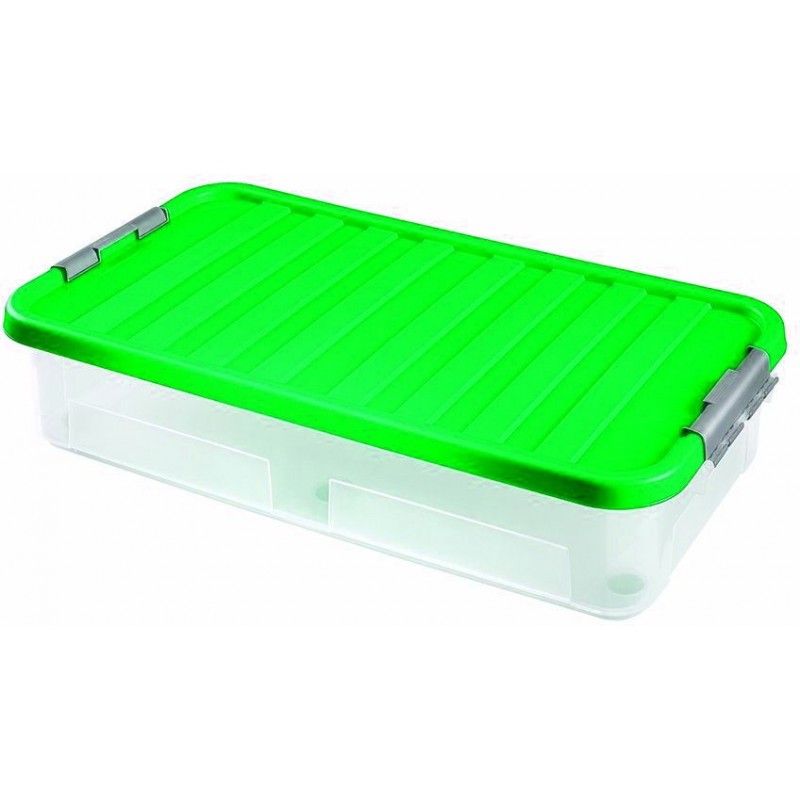 HEIDRUN Box úložný pod postel s víkem, 80 x 40 x 18 cm, 40 l, transparentní/zelená 1616