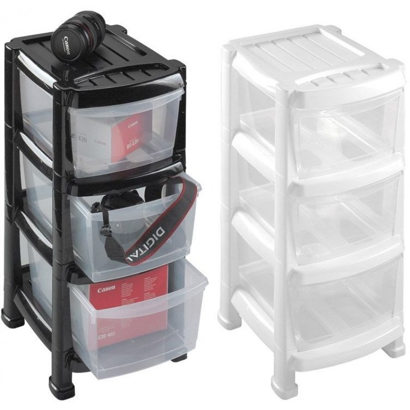 HEIDRUN Regálek se třemi zásuvkami úzký černý 1520Regálek má tři transparentní zásuvky a barevnou kostru.