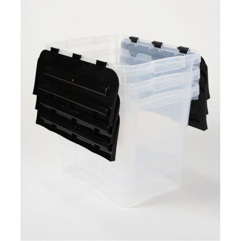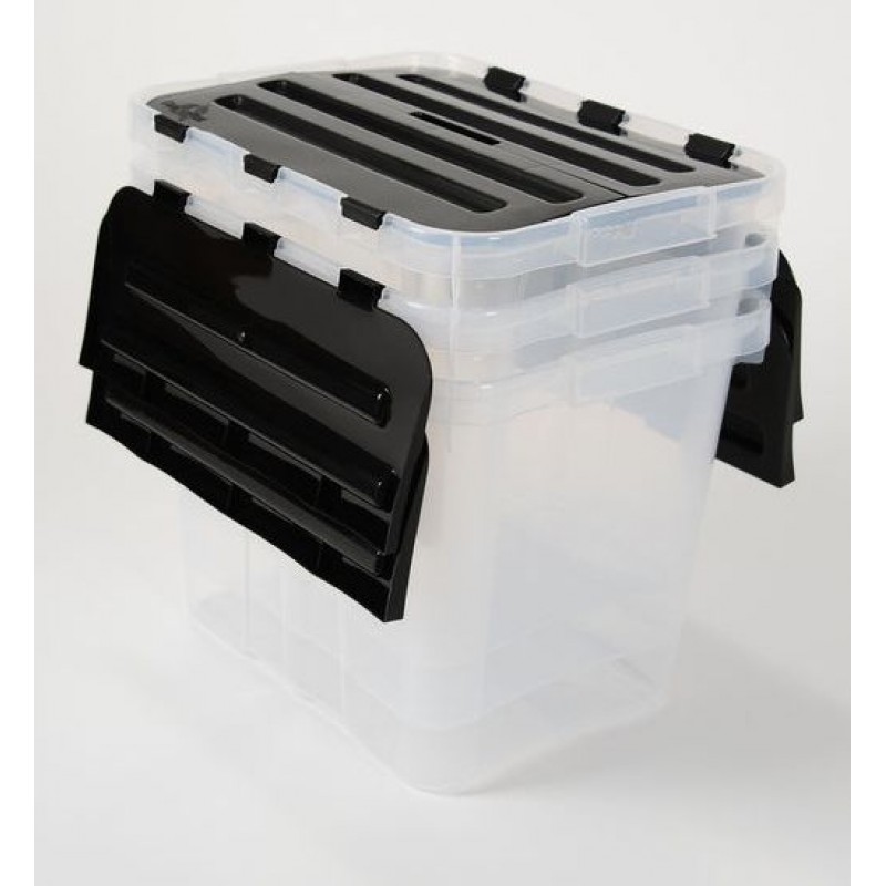Boxy úložné s integrovaným víkem značky Heidrun, obsah 30l.- transparentní box s integrovaným černým víkem