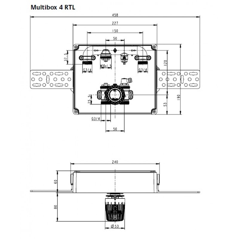 Multibox 4 je určen pro regulaci podlahového nebo stěnového vytápění nebo pro kombinaci podlahového vytápění a vytápění otopnými tělesy. Díky dvěma uzavíracím ventilům, lze uzavřít přívodní i vratné potrubí. Kryt umožňuje korekci montážní pozice v rozsahu 6° na každou stranu. Uchycení krytu je skryto. Barevné provedení v bílé barvě nebo chrom. Základní box lze snadno upevnit do různých stavebních kontrukcí a kompenzovat hloubku uložení v rozmezí do 30 mm.