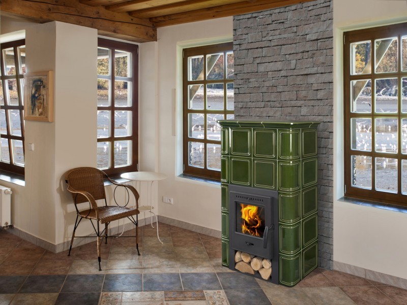 Hein Catania 1 H kachlová kamna teplovzdušnáBarevné provedení na obrázku: 19301 zelená šumavská / korpus černá 12.