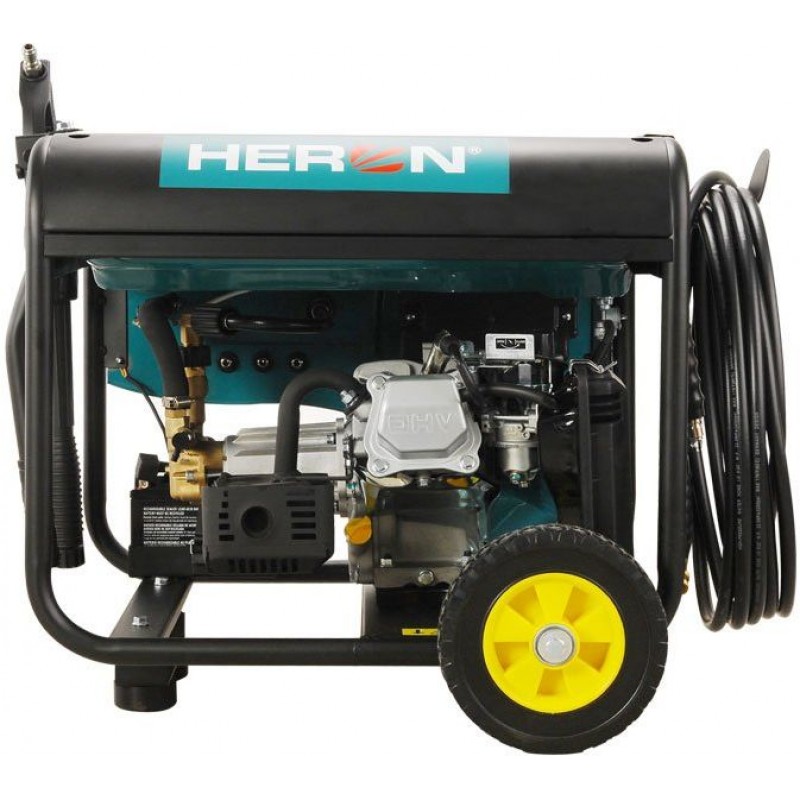 HERON čistič vysokotlaký motorový s dálkovým ovládáním 8896350Vysokotlaký motorový vodní čistič vyniká vysokým tlakem vody na výstupu - až 210bar, což zajišťuje jeho vysoký čistící výkon. Čistič je tak určen k velice efektivnímu čistění povrchů a ploch z kamene, dřeva, kovu, plastu jako např. chodníků a teras za účelem odstranění mechu a řas, dále fasád domů, zahradního nářadí atd. Hlavní uplatnění nachází tento výrobek na stavbách, po povodních, čištění aut a zemědělské techniky a pro místa kde není vždy dostupný el. proud a je třeba vyčistit větší plochy.