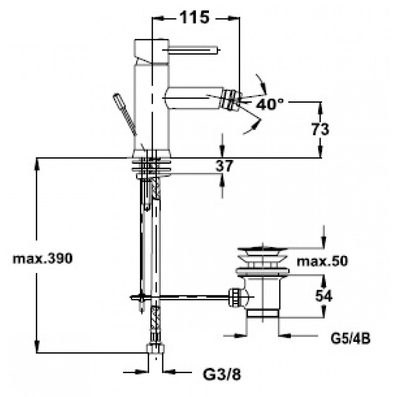 HERZ Fresh bidetová směšovací baterie, horní část sifónu, 5/4" UH00536Baterie má kvalitní mosazné tělo s rukojetí