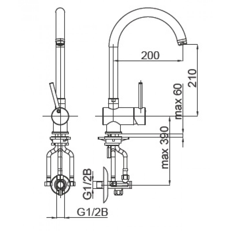 - Osová rozteč výtokového ramínka: 230 mm