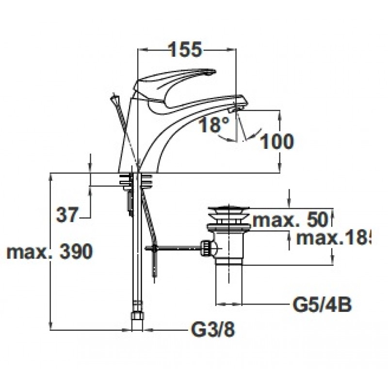 Osová rozteč výtokového ramínka 155 mm