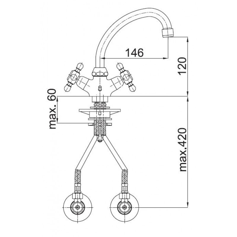 HERZ Stil dřezová směšovací baterie, "HU" výtok, rohové ventily UH07158Baterie má kvalitní kované tělo
