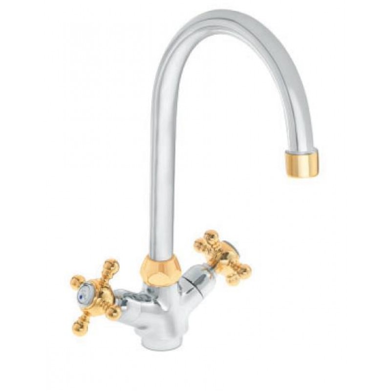 HERZ Stil dřezová směšovací baterie, "J" výtok, rohové ventily UH07157Baterie má kvalitní kované tělo