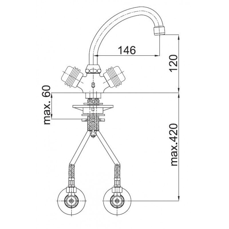 HERZ Val dřezová směšovací baterie, "HU" výtok, rohové ventily UH07153Baterie má kvalitní kované tělo