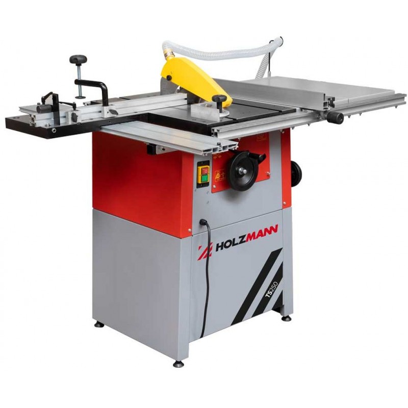 Stolní kotoučová pila HOLZMANN TS250_230V je základní model s vysokou kvalitou a vynikajícím poměrem cena/výkon. Stabilní robustní stůl z šedé litiny včetně prodloužení zajišťuje přesné a bezpečné řezání. Manuální nastavení výšky a úhlu pilového kotouče (90°–45°) umožňuje flexibilní práci a přesné řezy. Stroj je dodáván s tvrdokovovým pilovým kotoučem a podélným a příčným pravítkem pro snadnou obsluhu.