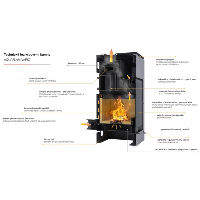 HS FLAMINGO AQUAFLAM VARIO SAPORO 11/5kW krbová kamna, elektronická regulace hnědá HSF34-080Aquaflam Vario - kamna, která lze dle vaši potřeby variabilně využívat buď k teplovzdušnému nebo k teplovodnímu vytápění. Moderní vzhled, který bude krásným doplňkem ve vašem bytě, domě či chalupě. Samozřejmostí je externí přívod vzuchu a oplach skla.