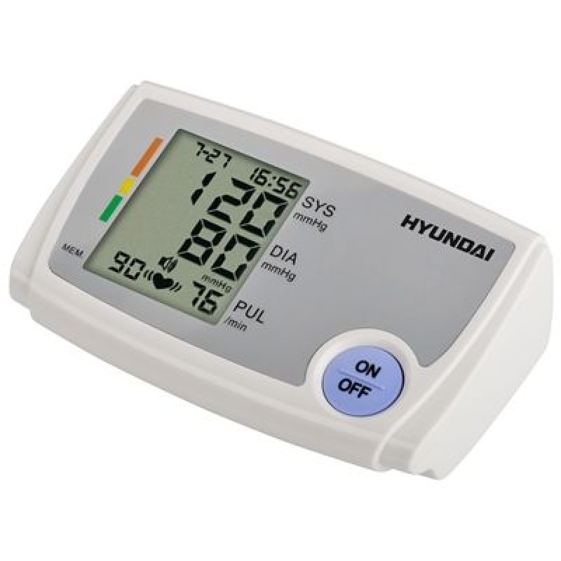 Automatický měřič krevního tlaku a pulsu Hyundai BPM 700. Je vybaven dobře čitelným LCD, pamětí pro 30 záznamů, automaticky se vypne a indikuje slabé baterie.