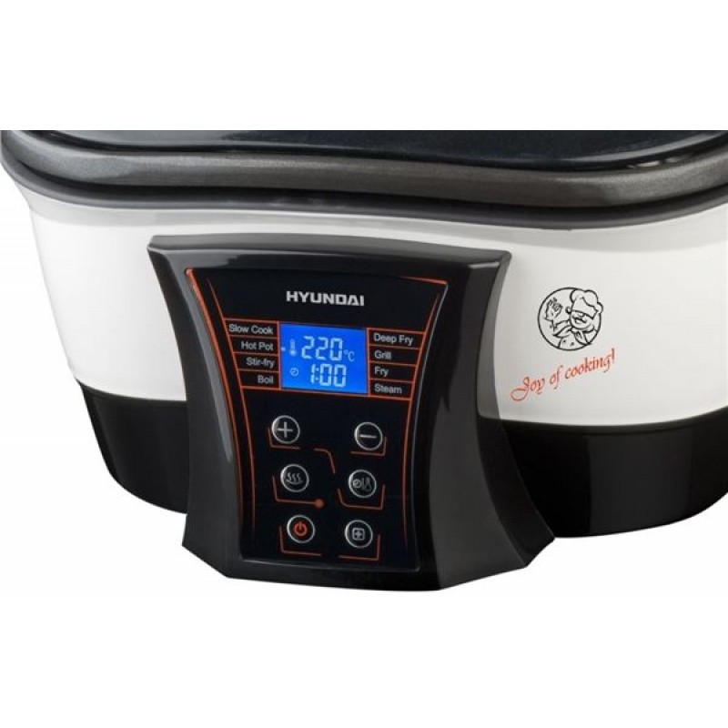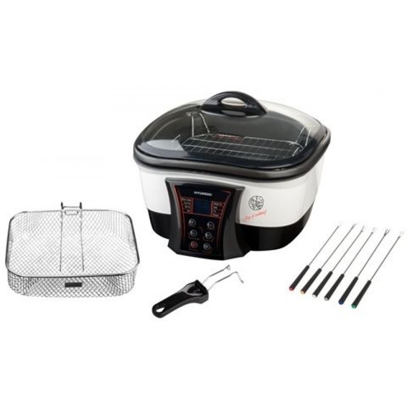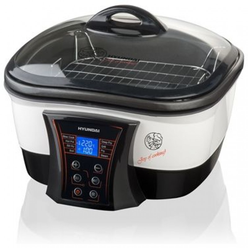 Multifunkční hrnec Hyundai MFC 03 dokáže vařit, zapékat, fritovat, grilovat i smažit. Zastoupí i pomalý či parní hrnec, lze jej využít i k čínskému vaření Hot Pot. Disponuje plynulou regulací teploty v rozsahu 50 - 240° C, nepostrádá desetihodinový časovač, ani funkci Keep Warm pro udržení teploty.