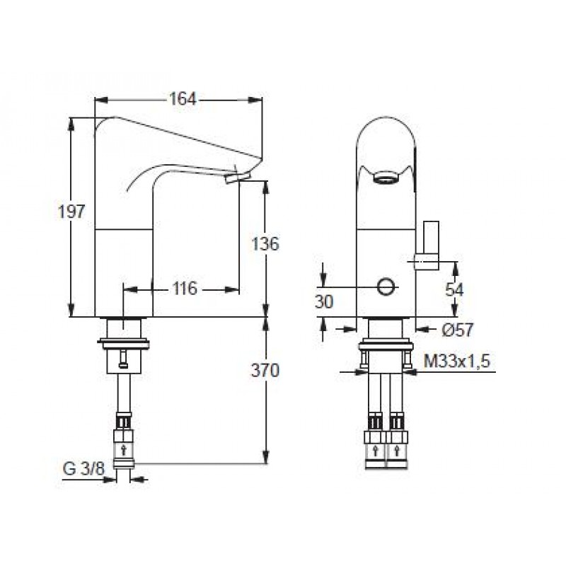 IDEAL Standard CERAPLUS armatura umyvadlová elektronická A4154AASměšovací, s integrovanou elektronikou – k připojení na síť speciální perlátor s pojistkou proti odcizení, s laminární regulací průtoku (regulace proudu vody bez vzduchu) s flexibilními hadicemi SPX, bez odtokové garnitury.