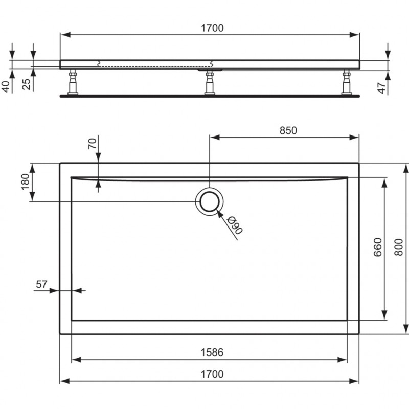 IDEAL Standard ULTRA Flat obdélníková sprchová vanička 170x80 cm, Ideal Grip K5189YK