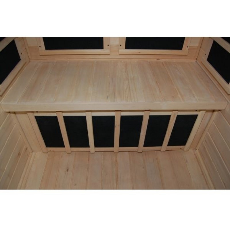 V infrasauně je rozmístěno osm karbonových topidel. Ve srovnání s jinými typy karbonové zářiče tvoří tenké pásy, které vyvinou povrchovou teplotu 70 - 170 stupňů Celsia. Karbonové zářiče dosáhnou maximální teploty pomaleji, naproti tomu mají delší životnost (při saunování 3x týdně cca 90 let). Tento typ zářičů prohřeje lidské tělorovnoměrně a do hloubky. Infrasauna má podlahové topidlo