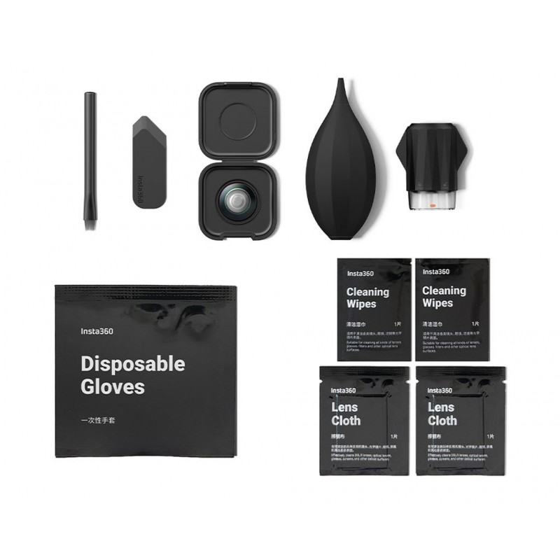 Obsahuje jednu originální vyměnitelnou čočku, nástroje pro výměnu a čištění (např. grip tool, blower, hadříky, štětec, rukavice a pouzdro)