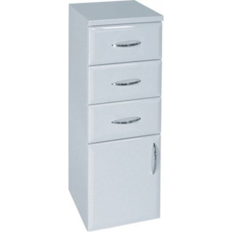 Koupelnový nábytek - nízká koupelnová skříňka závěsná s plnými dvířky, třemi zásuvkami, levá.