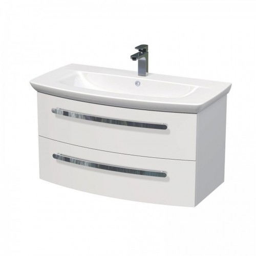 Vodovodní baterie a umyvadlový sifon nejsou součástí koupelnové skříňky.