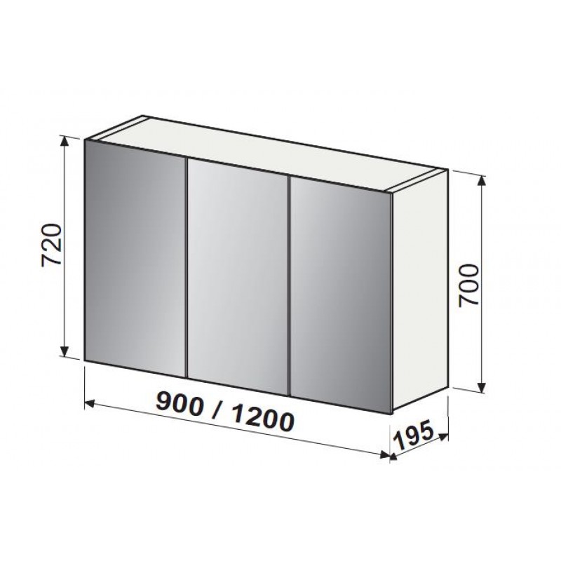 INTEDOOR TRIUMPH koupelnová zrcadlová stěna bez osvětlení EZS120/84Koupelnová zrcadlová stěna šíře 120 cm, oboustranná zrcadlová dvířka, za zrcadlovými otvíravými dvířky dvě pevné police. Zásuvka s vypínačem (Berker) IP44 umístěna zespodu zrcadlové skříňky.