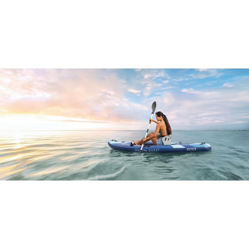 INTEX DAKOTA QUEST Sit-on-top nafukovací kajak 320x89x20cm je všestranné řešení pro milovníky vodních aktivit, které lze využít nejen jako kajak, ale i jako paddleboard. Díky stabilní konstrukci, technologii Drop Stitch a bohaté výbavě nabízí maximální komfort, pevnost a flexibilitu pro rekreační jízdu, rybaření i sportovní využití.
