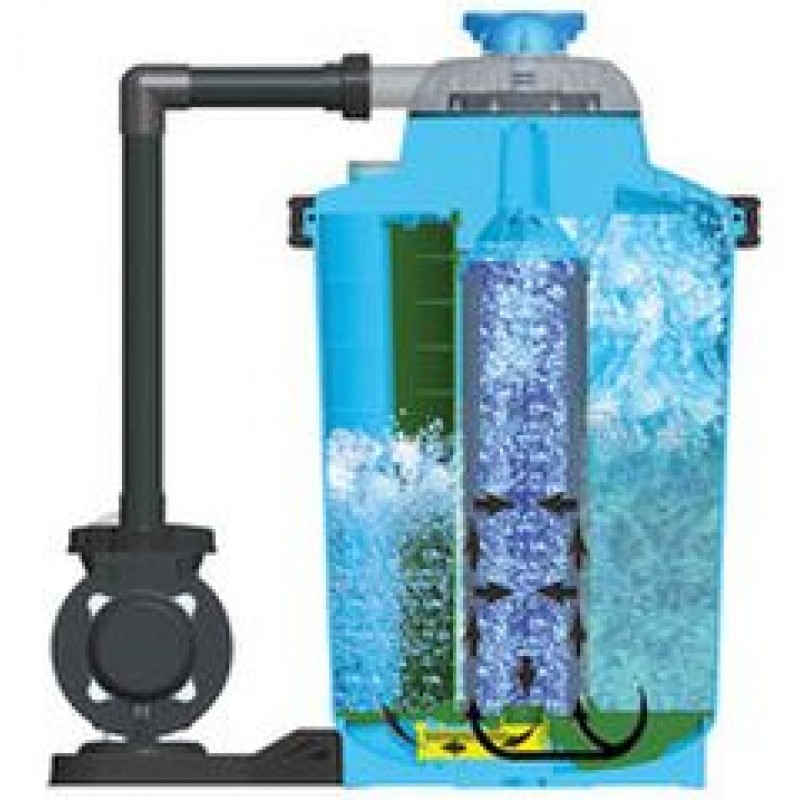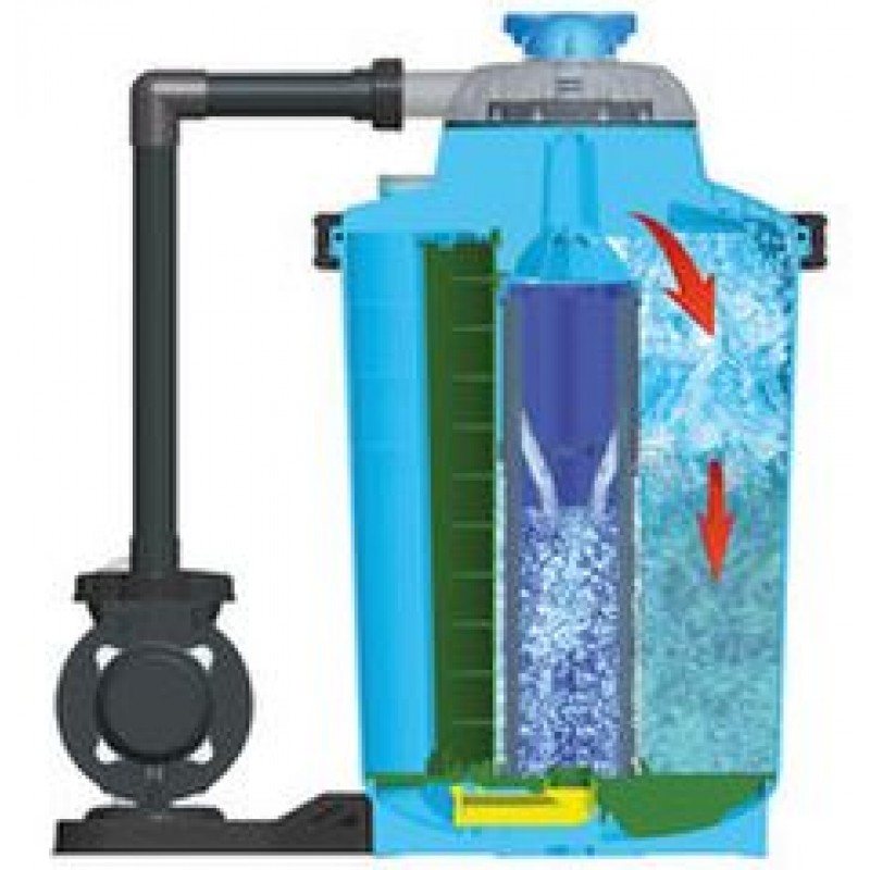 Filtrování ceolitfiltrem. Přísun vody se dotýká stěn ceolitfiltru a tím se tak filtruje ve středu nádoby filtrace. Odtud proudí čistá voda dál do nádoby. Zde následuje UV-světlo (není součástí) a podporuje její čistotu.