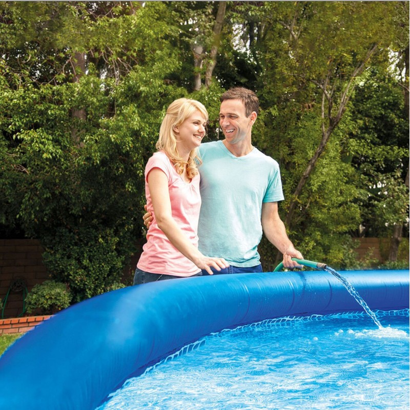 Easy Set Pool od značky INTEX je navržen tak, aby jeho instalace byla maximálně jednoduchá – stačí nafouknout horní prstenec, napustit vodu a bazén se sám postaví. Díky velkému objemu poskytuje dostatek prostoru pro rodinu i přátele, zatímco integrovaná kartušová filtrace INTEX zajišťuje lepší cirkulaci a čistotu vody. Součástí setu je také bezpečnostní žebřík s možností zamezení vstupu, krycí plachta a podložka pod bazén, což z něj dělá kompletní a praktické řešení pro pohodové letní koupání na zahradě.