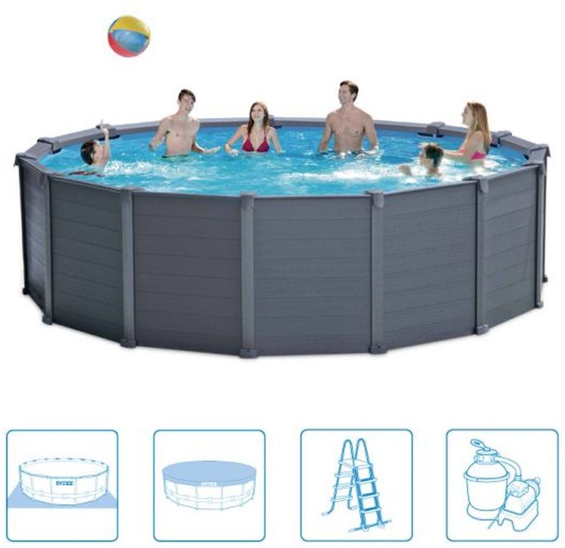 Intex Graphite Panel Pool s průměrem 478 cm je velmi prostorný a nabízí příjemné plavání pro celou rodinu.