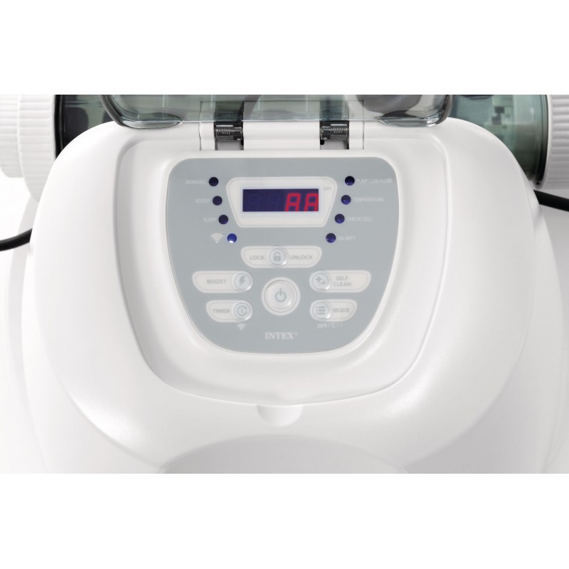 Velkou výhodou tohoto modelu je WiFi připojení a podpora aplikace INTEX Link®. Prostřednictvím chytrého telefonu můžete pohodlně ovládat solinátor, sledovat jeho provoz a propojit jej s dalšími kompatibilními zařízeními, jako je Chytrý Analyzátor Vody nebo filtrační čerpadlo. Vytvořte si kompletní chytrý systém údržby bazénu a mějte kvalitu vody plně pod kontrolou odkudkoliv.