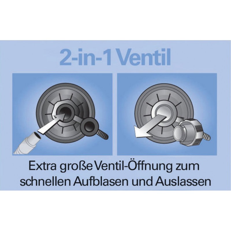 - Ventil 2 v 1 s extra širokými otvory pro rychlé nafouknutí a vyfouknutí