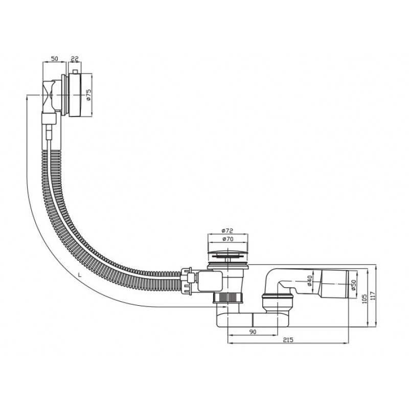 Jika Automatická vanová výpusť včetně vanového sifonu 40 / 50, délka 550 mm, plastové tělo přepadu H2948160040001ilustrační foto