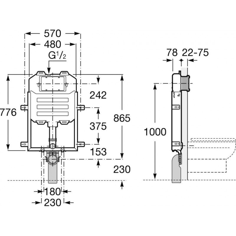 BASIC WC SYSTEM COMPACT, hloubka 8 cm, připojení odpadu 90/110, pro závěsné klozety k namontování na zeď s nutností obezdění,tlačítko Single nebo Dual Flush (není součást balení).