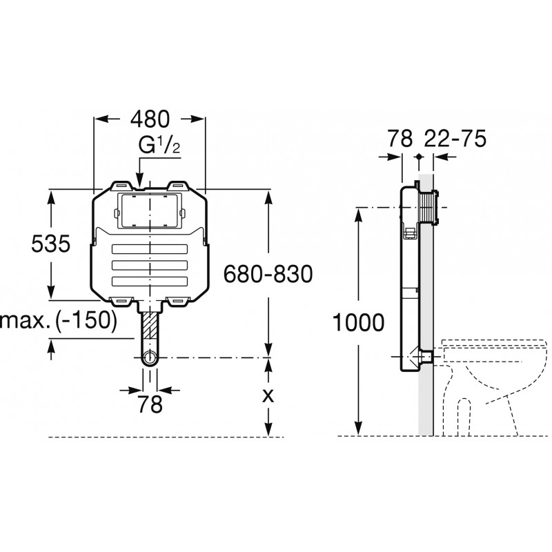 BASIC TANK SYSTEM COMPACT, hloubka 8 cm, připojení odpadu 90/110, pro samostatně stojící klozety, k namontování na zeď, s nutností obezdění,tlačítko Single nebo Dual Flush (není součást balení).